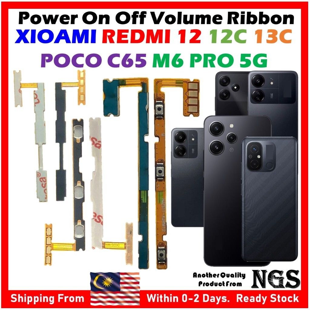 High Quality Power On OFF Volume Flex Cable for XIAOMI Redmi 12 4G/5G / Redmi 12C / Redmi 13C / Poco C65 / Poco M6 Pro 5G
