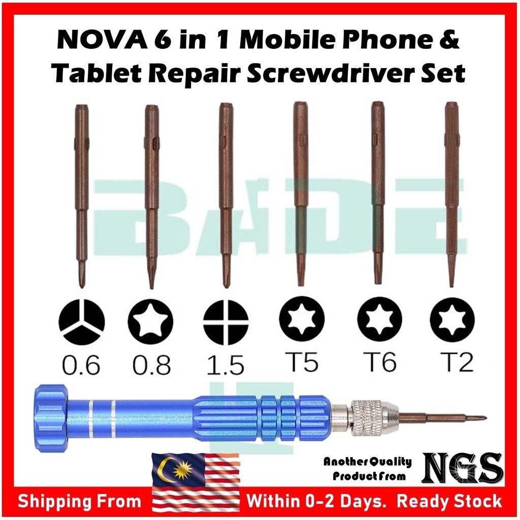 6pc Precision Screwdriver Ideal for diy repair for all kind of mobile phones such as Apple, Samsung, Nokia, Sony HTC and many, computer, laptop, tablet, pc, small electronics, spectacles, jewellery etc. High quality aluminium driver with twist cap bit storage. Powerful magnet holds bits securely.
